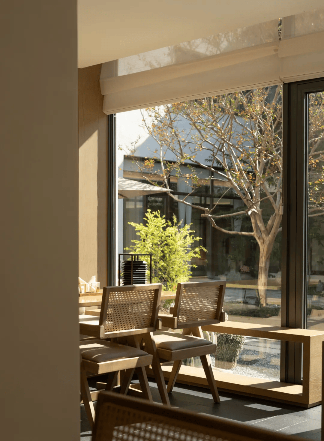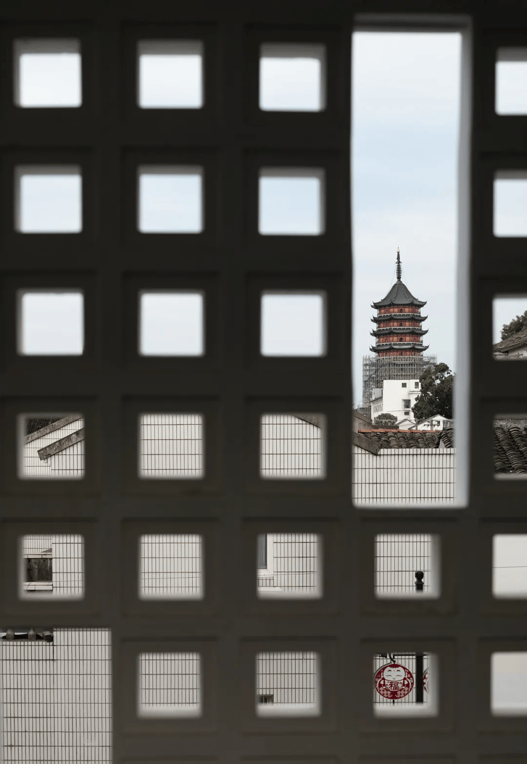 窗影婆娑,框景成诗,凭栏远眺,白墙黛瓦与北寺塔尽收眼底,尽览姑苏韵味。身心与自然相融,体悟东方美学的悠然意境,滋养精神舒缓。