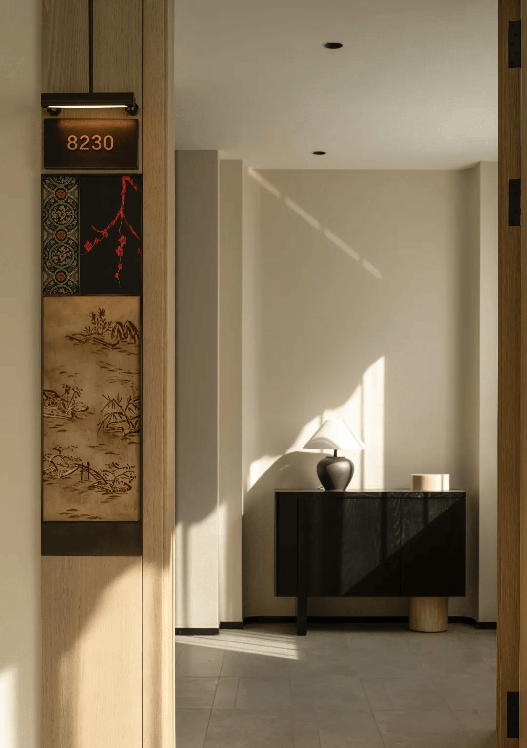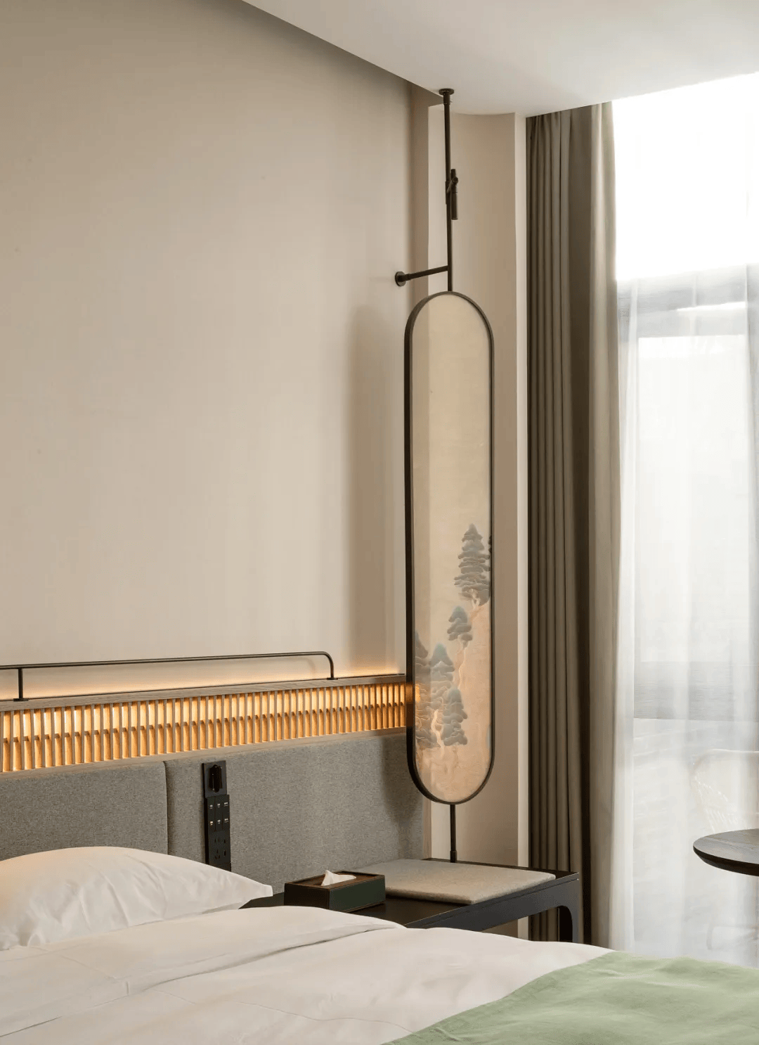 立屏绘山水,以画传情,尽显当代东方之美;窗格暗藏古意,床品取自然淡彩,壁龛以当代手法演绎雅致……檐下光影、枕边木语、素墙浅榻,时光渐慢下来,将在地风情转化为触手可及的现代诗意,在方寸之间感受穿越时光的风雅与自在。