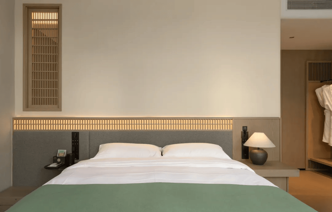 庭院房的独揽天光、LOFT享叠层之趣、豪华浴缸房之奢享、亲子共居的同乐之趣……设计将栖居形态引向多元表达,围绕“隐”的松弛内核,细腻回应不同的旅居需求,让城市微度假的体验升维为更具个性化的身心熨帖。